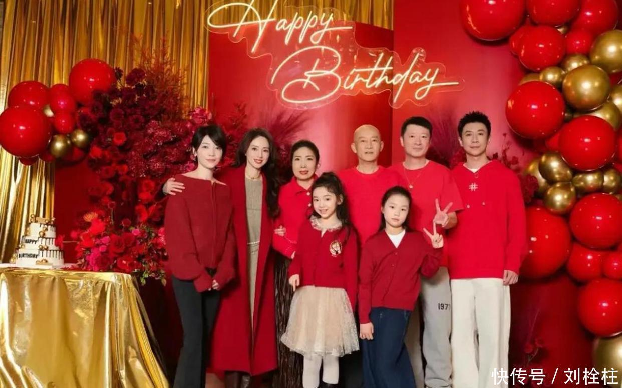 从现场拍摄的照片中可以看到,董璇专门为张维伊准备了一个三层的大蛋糕,这不仅颜值出众,还显得格外高雅。在宴会现场,家人们为了表达祝贺,共同为张维伊穿上了鲜艳的红色服装,并且整齐地合影留念,拍下了一张全家福。